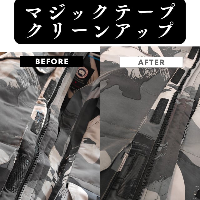 カナダグースの顔とも言える袖口やフロントの面ファスナー。そこに詰まった白い糸くずやホコリは、せっかくの高級ダウンの品格を損なうだけでなく、粘着力の低下にも繋がります。